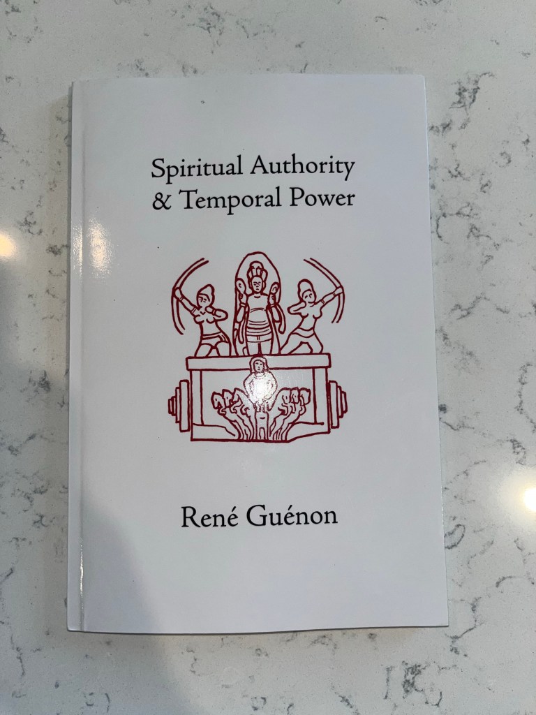 “Spiritual Authority and Temporal Power” by René Guénon. In a nutshell: “The domain of strife is the domain of action, that is to say the individual and temporal domain; the ‘unmoved mover’ produces and directs movement without being involved in it; knowledge enlightens action without partaking of its vicissitudes; the spiritual guides the temporal without mingling in it; and thus everything remains in its proper order, in the rank that is its own in the universal hierarchy”