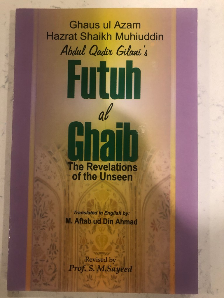 “Futuh al-Ghaib” (“The Revelations of the Unseen”); Considered by many to be the second of the two most important books on the rites of initiation into a spiritual organization and spiritual order in the Islamic tradition. One must note that initiation — aside from performing the rites of initiation — is accompanied by a spiritual guide and spiritual epiphany. Without the spiritual guide and spiritual epiphany, it is highly unlikely that one can reach the point of being able to perform the rites of initiation into a spiritual organization or spiritual order.