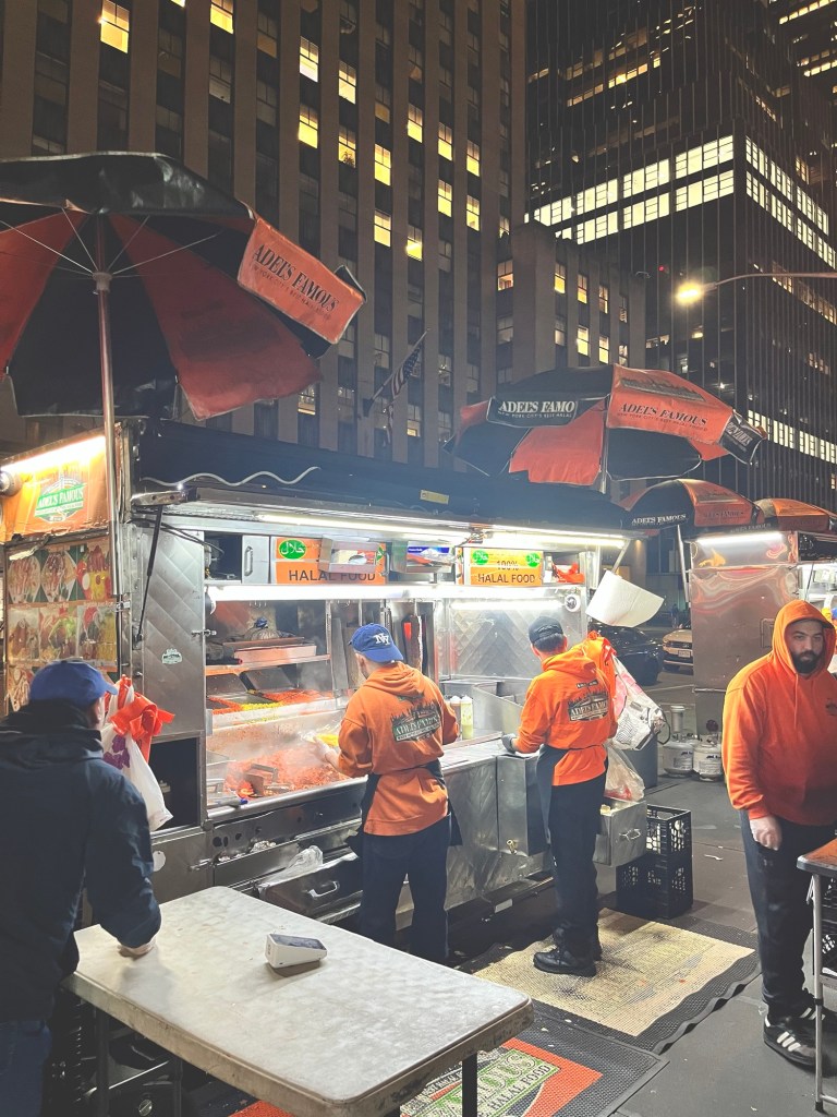 Adel’s Famous Halal Food. Located on 6th Avenue between 48th and 49th St.; Right in front of the Rockefeller Center and Fox News studios. It is hands down the most famous and popular food cart in all of New York City. And it is because every aspect and dimension of its identity is unique and one of a kind. Some people and some things are just unique and one of a kind. That is just how they are and how they have turned out. For one, it’s the color and marination of the chicken which makes it different than its competitors. Then, it’s the spicy rice. At times, the line stretches the entire block. On certain occasions, it takes two hours to get served. It took me a little more than an hour on a Wednesday night. Even its hours of operation are unique and strange. From 6pm to 4am. And yet, it takes two hours to get your food on certain occasions. The line and the wait are part of the experience and the identity of Adel’s. Because of the wait, easily, you can strike up a nice conversation with the people in front of you and behind you. Like I said, unique and one of a kind. That’s just how some people and some things are. And it cleansed all my sins overnight, to say the least. Spicy and hot. If you like spicy and hot, this is the place for you.
