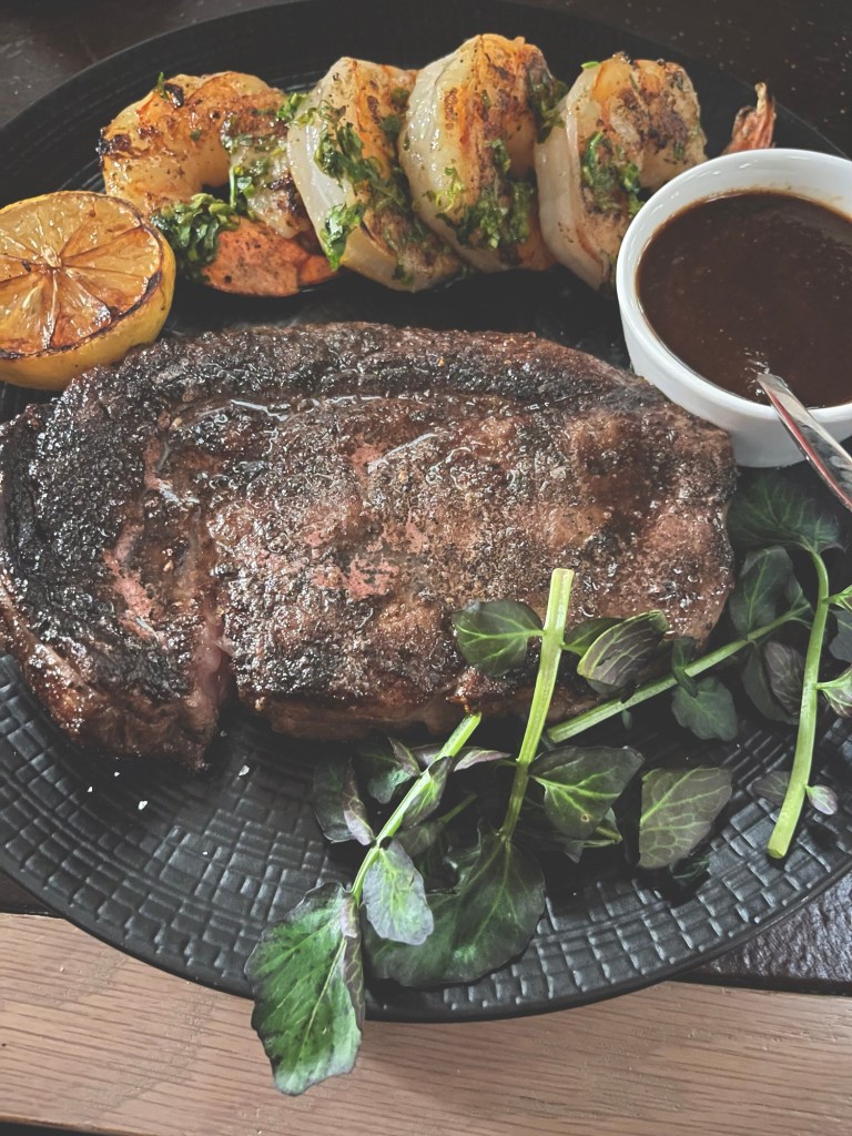 “Bourbon Steak” – located at the Four Seasons Hotel in Georgetown – is the Mecca of Wagyu in the DC-Metro Area. Here we have a 14 oz. Colorado Ribeye Wagyu with Grilled Shrimp and Bourbon Sauce on the side. It went very well with the very delicate Maryland Crab Cake that came before it as an appetizer. The Japanese cuts were in the 400 to 600 plus dollar range, and were only about half or even less than half the size of the 14 ounce American Wagyu that I had for about $150. There was an Australian cut on the menu as well, which was also much cheaper than the Japanese cuts and was closer to the price of the American cut. It kind of balances out all the religion and war and politics. But then again, you need both.