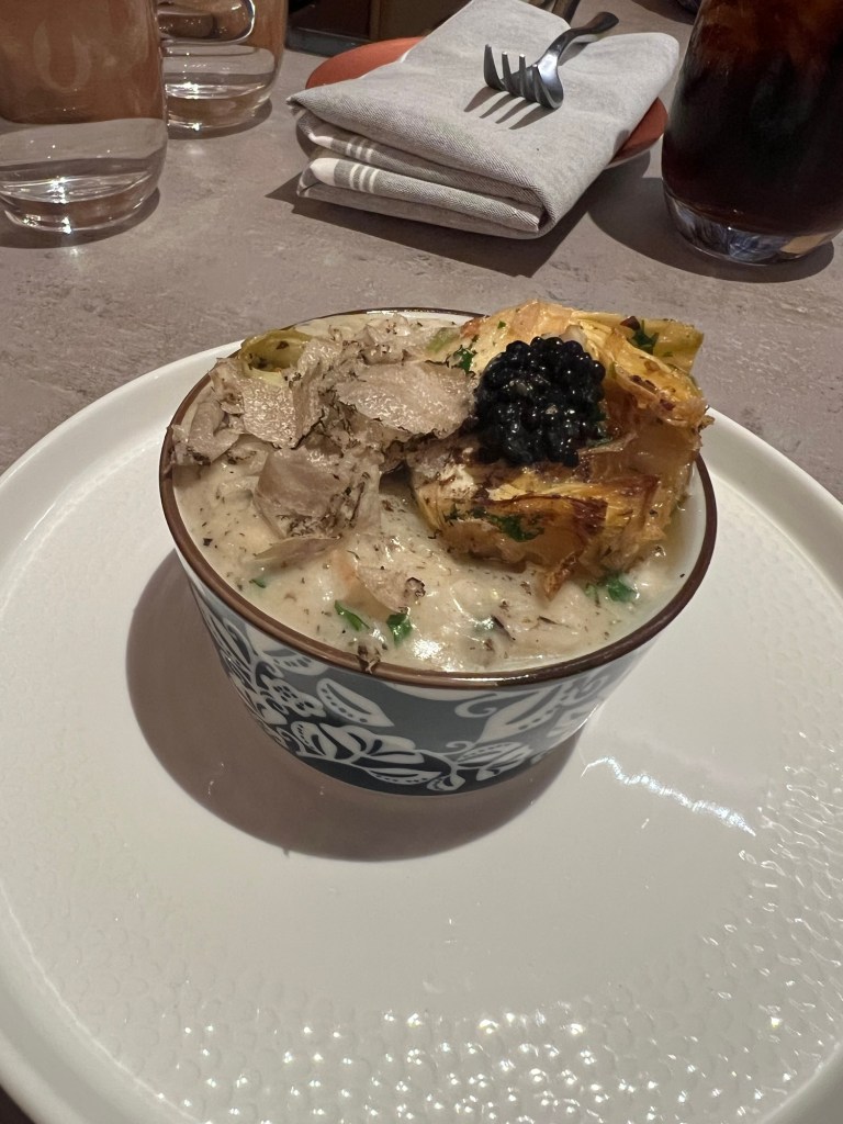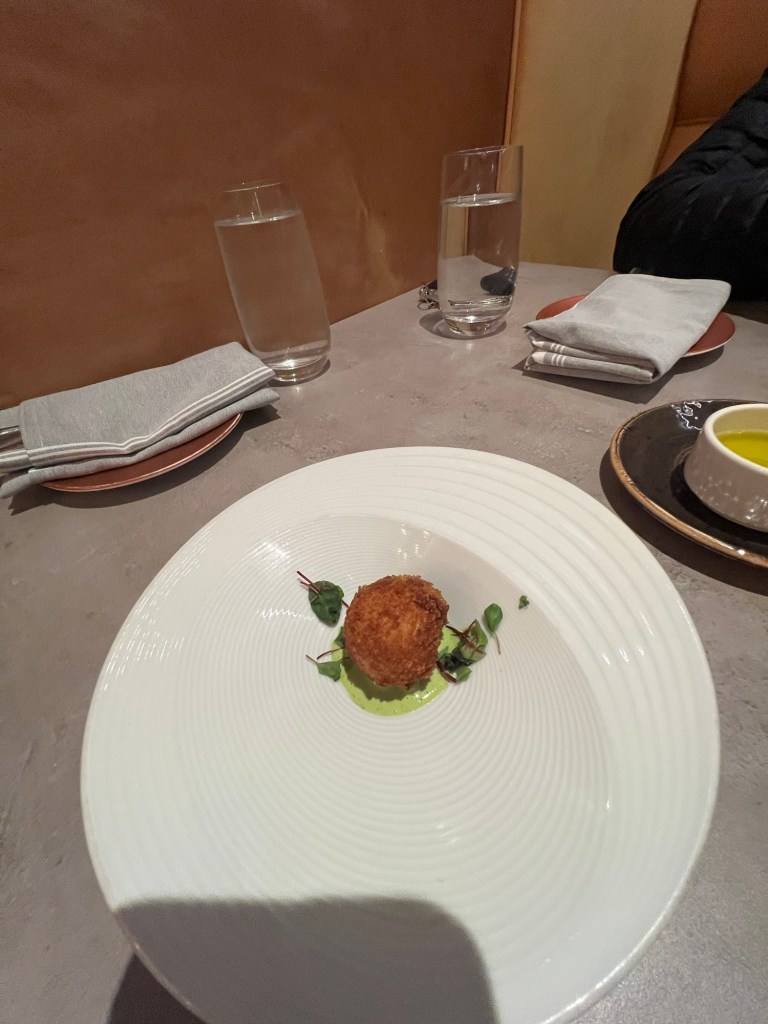 I’ve knocked out 60 percent of the tasting menu thus far when you count the gift from the chef at the very beginning: chicken foie gras nugget with dill sauce. The dill sauce was actually very good.