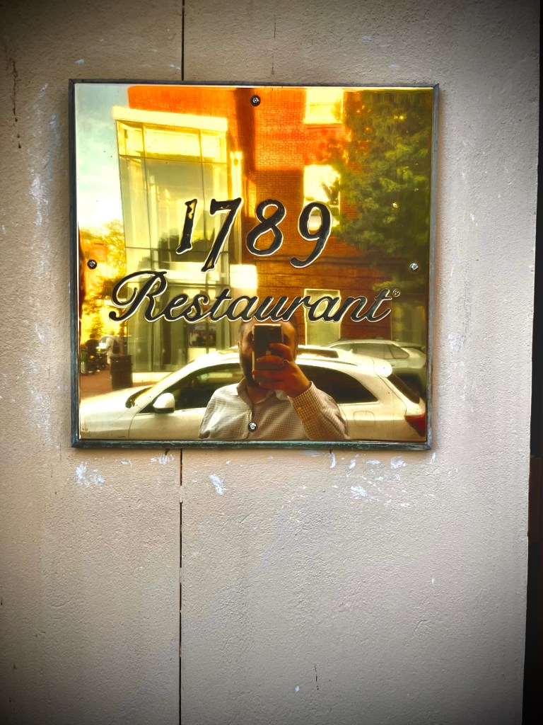 “1789 Restaurant and Bar.” Located right near the Georgetown University campus. I’ve spent a lifetime in this area. What’s so significant about the number “1789”? It was the year the US Constitution – but specifically the ‘Bill of Rights’ – was promulgated. It took time for the Constitution to develop to what it is now. It was the year the United States officially became an actual state in the international system. Before that, it was merely a ‘confederation’ of individual states and before that it was a colony of Britain. But the ‘Bill of Rights’ is everything. It’s the social fabric of the United States itself. Destroy the social fabric, you destroy everything. It either takes a natural disaster or a social schism to destroy a government and society. Which one are we in the mood for?