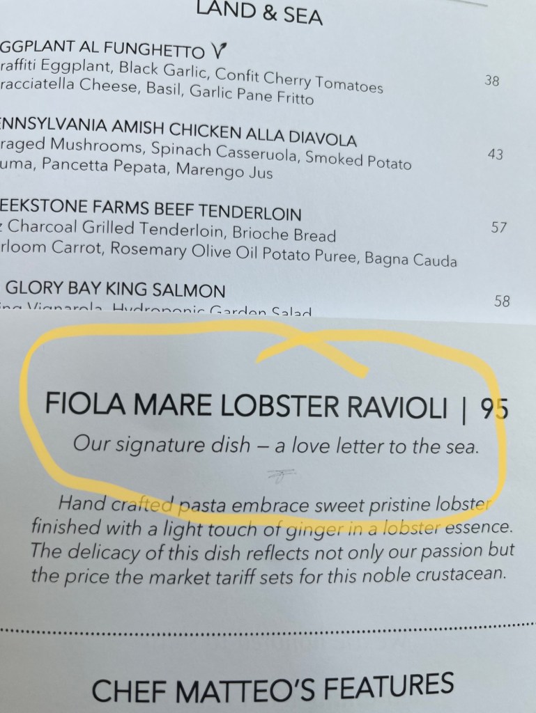 ‘Fiola Mare.’ Premier Italian seafood. Fresh off the boat. Where the experiment and the gamble ends. Nowhere else to go after this. Nowhere. There’s nowhere else to go.