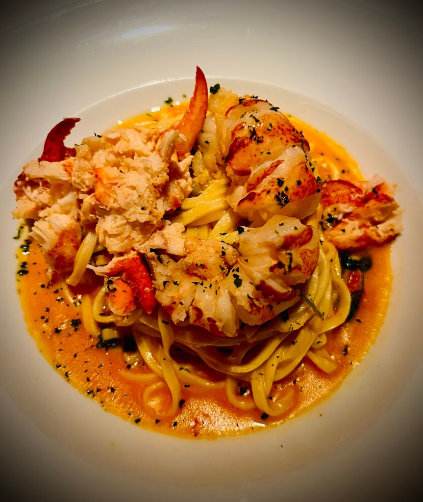 And for the main dish, lobster linguine. The red pepper and parmesan sauce combined with the thick and watery lobster was genius. And look at how beautiful it looks.
